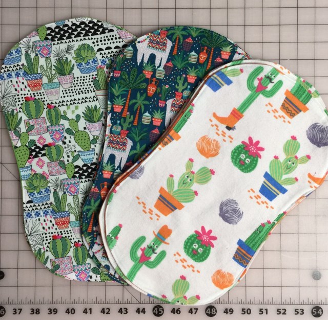 I’m not good at responding to comments lately, I’ll blame it on my bum wrist. The burp cloths have flannel on one or both sides.