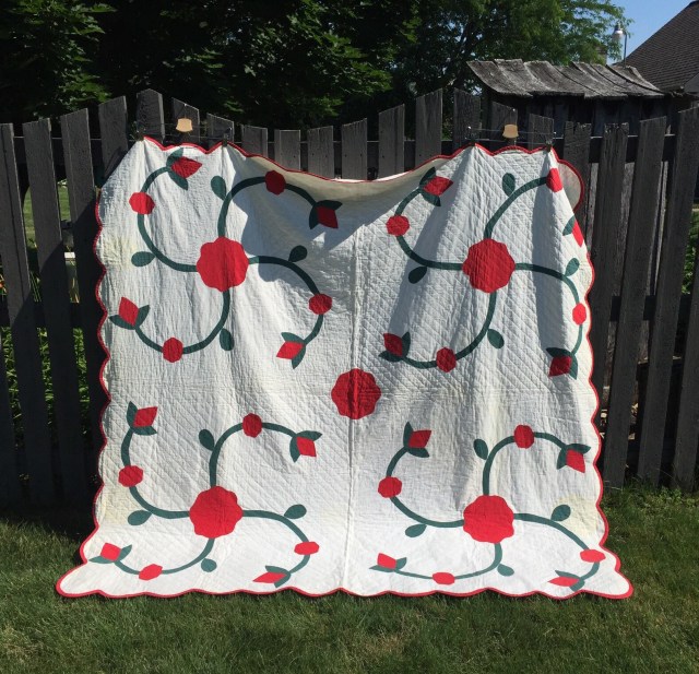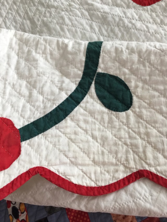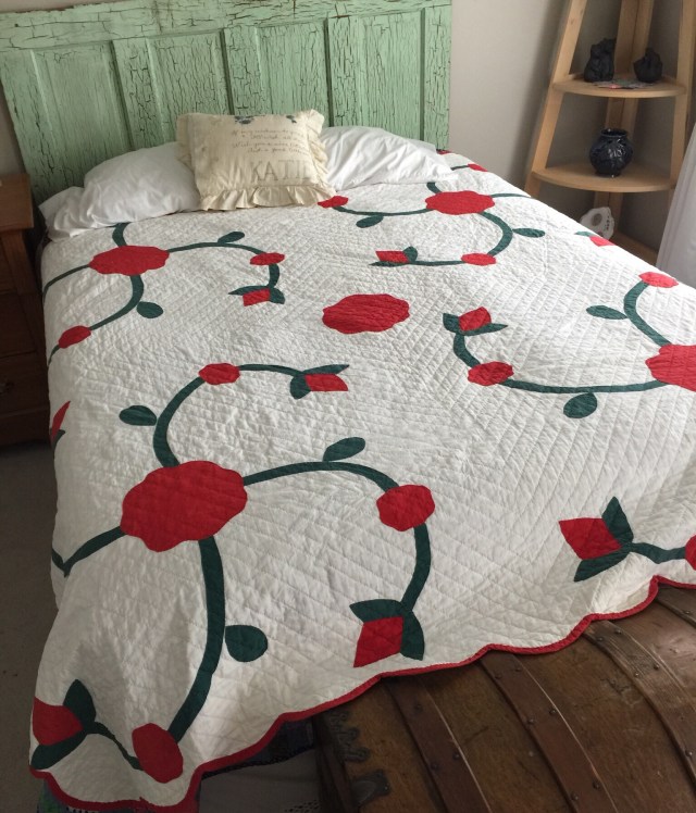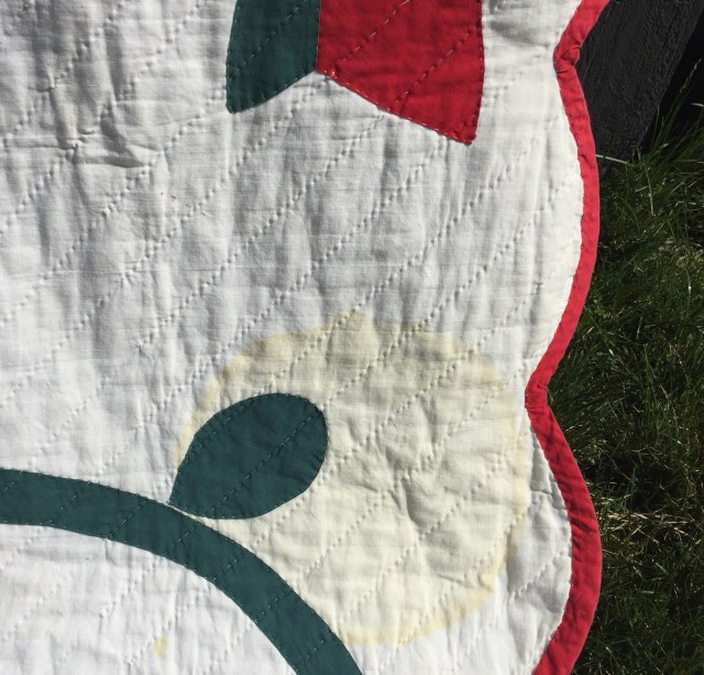 For an antique applique quilt, the pattern is very minimalist, even by today’s standard. Was it a trend at some point? It is gorgeous and for $35, it’s a steal. Enjoy! ;^)