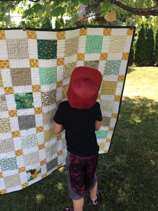 That quilt was a really sweet finish – love that texture! And I agree with Big E’s shirt – he’s certainly “muy guapo”!