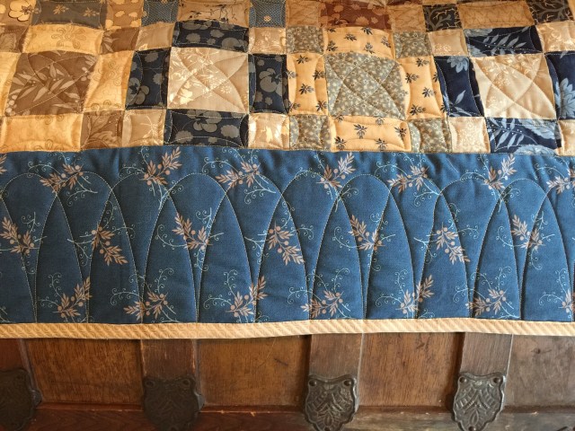 It’s a beautiful quilt Katy. I really like the ‘perfectly imperfect’ curves of your quilting. It adds to the timeless, nostalgic look of the quilt. I think we are in danger of being crushed by ‘perfect’ quilting with all the tools and equipment that can be used. It gets quite intimidating seeing photos of perfect quilting streaming onto social media. In the UK we’ve noticed that fewer non-professional patchwork quilters are submitting their quilts to exhibitions and shows – I wonder if that is because ‘ordinary’ quilters are intimidated by the perfectionism we see all the time? I know I struggle to be satisfied with ‘less than perfect’ but actually looking at your quilt I prefer the more natural less ‘manufactured’ look of your quilting design.