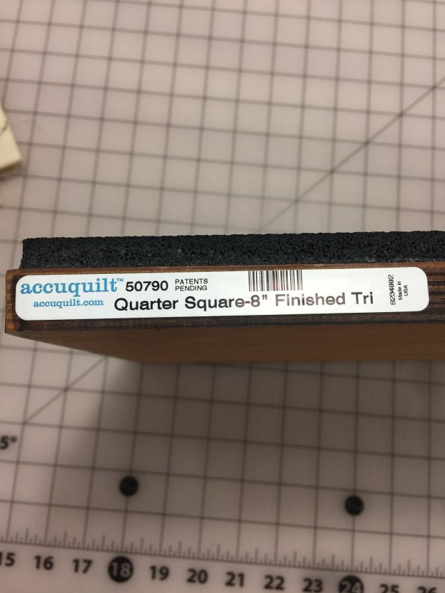 I also used a 4 1/2 inch HST dies, but I forgot to take a picture. I started with a layer cake so the above die essentially cut the layer cake squares into four equal parts. I got the background fabric I needed and got back to it.