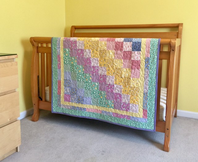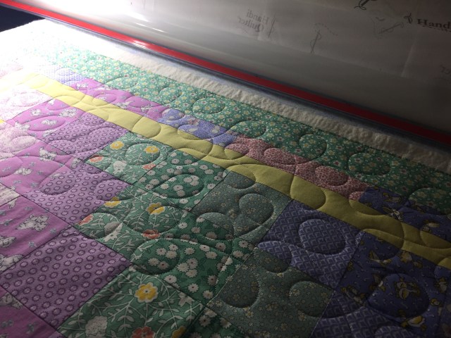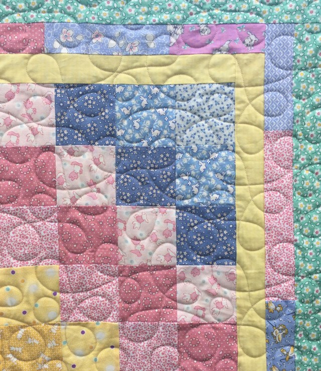 Great to find something like that at a yard sale, and then you turned it into something so beautiful! I like that panto. It looks like it would be fast and easy, but it’s also really cute on the baby quilt.
