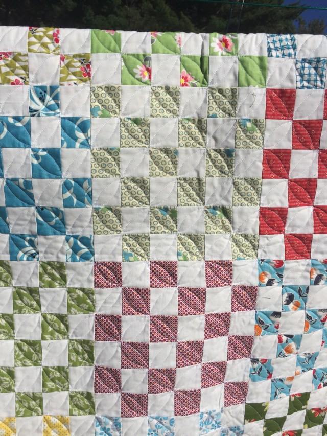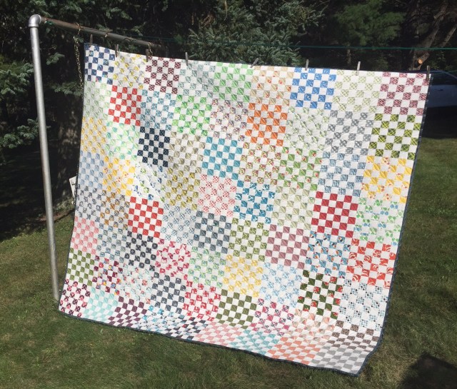 Today I’m sharing my finished 36 Patch quilt with you! It has 72 blocks that finish at 9 inches each.