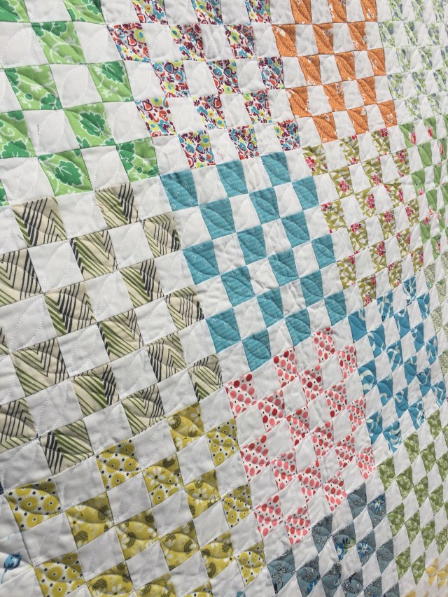 That’s really pretty! I love seeing all the Denyse Schmidt prints…they take me back! Beautiful finish! So many teeny tiny blocks!
