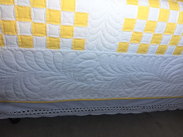 This quilting is just so lovely! It reminds me of older quilts in books that were hand-quilted and you just want to snuggle and touch it. Beautiful!
