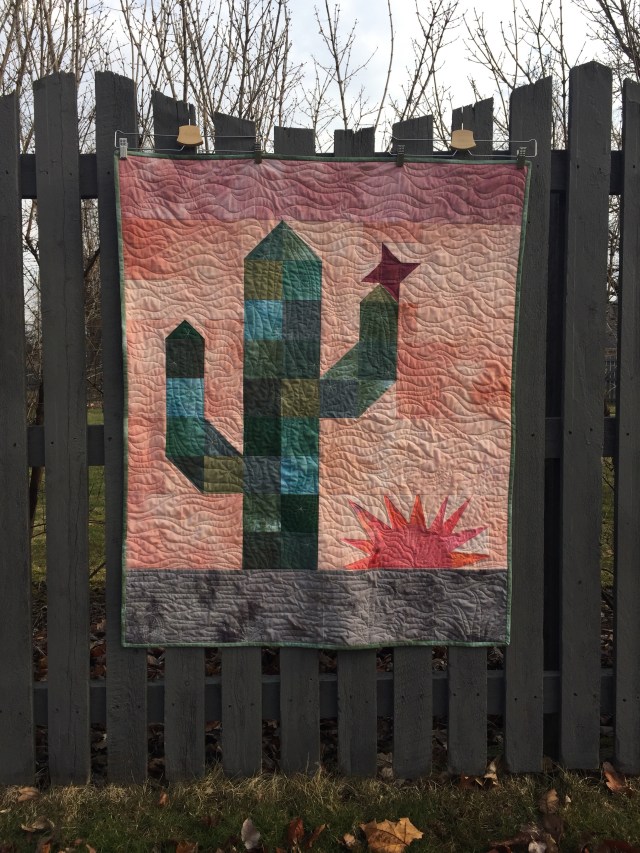 Just wonderful all around…the dyed fabric, the sahuaro cactus, the quilting.. It reminds me of growing up in Phoenix.