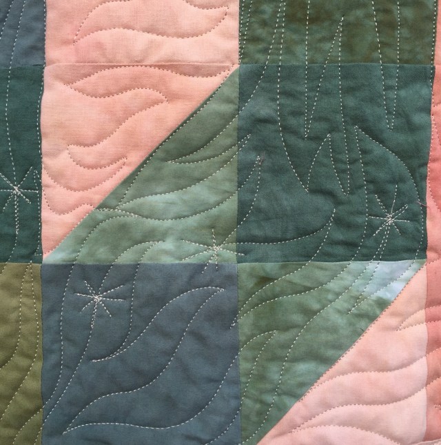 All the fabrics in the top were hand dyed by me. I really enjoyed free motion quick this!