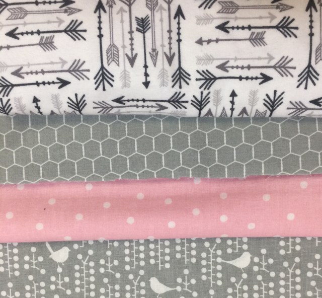Our pastor and his wife have grown their multicultural family through adoption. Such a beautiful thing! Their youngest son turned one year old on September 1st. Days later, they received a phone call informing them that his birth mother just had a baby girl. The birth mom requested that they adopt this sweet baby as well. Their instant response was YES! Can you imagine? They have three weeks (now two since they learned about this a week ago today), to get paperwork filed, fingerprints processed, and funds gathered. Most people have nine months to prepare, imagine only three weeks! Of course, I’m making a quilt. These are the fabrics I’ve chosen.