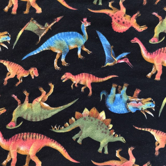 Two of my grandsons are obsessed with dinosaurs right now. I think all little boys go through this stage! So when I saw this flannel in JoAnn’s last week, I had to pick some up!