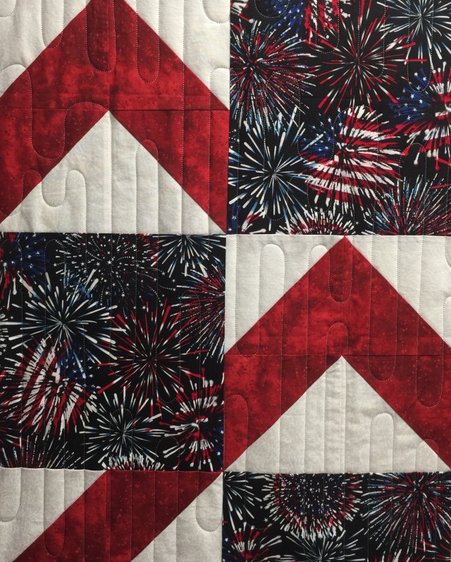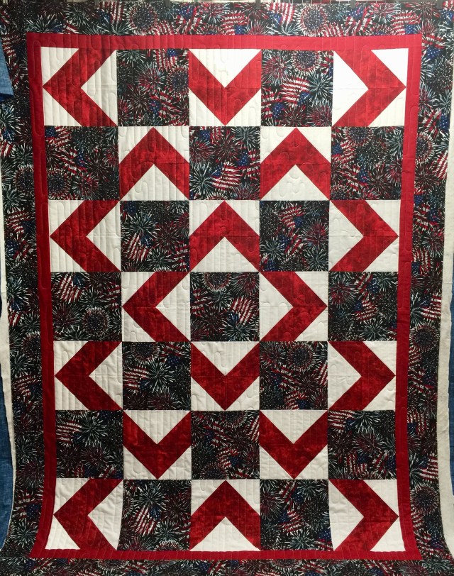 Here are two more quilts I’ve recently quilted from my Stitching Sisters Quilts of Valor group. This first was pieced by Nadine.