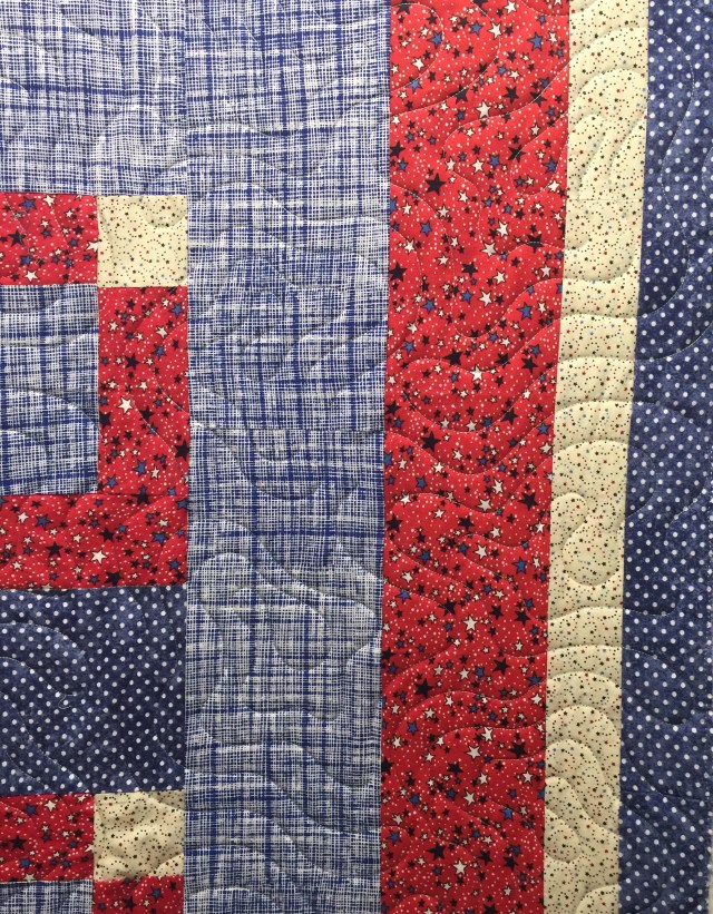 Great quilting Katy, Love those pantographs. The one you received with no name is from a new member that joined Stitching Sisters last month. I wasn’t there, but have voicemail from her saying she gave quilt to be quilted, forgot to include her name. Spelling is probably wrong…Gloria Vanevery. Thanks for all you do for us 🙂