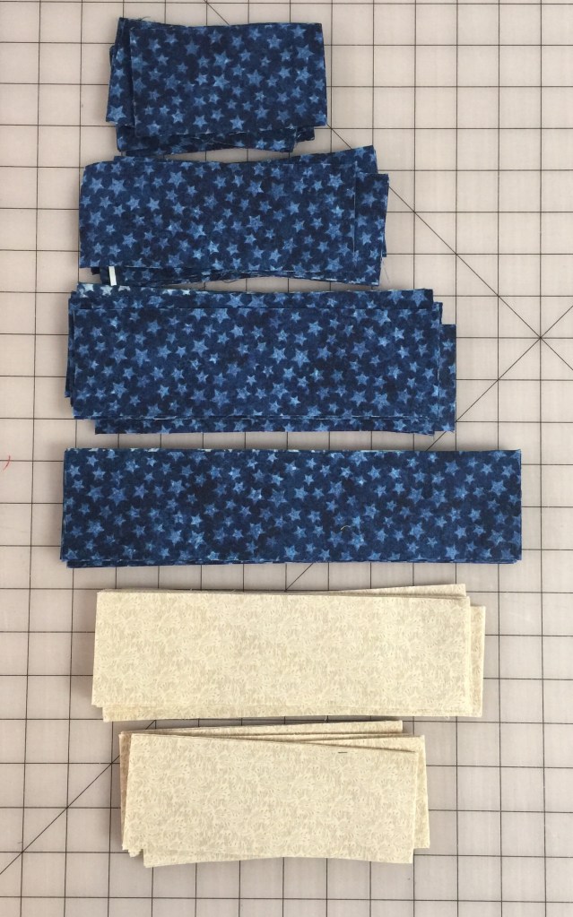 I used this Accuquilt die to cut my 2 1/2 inch strips and then sub cut with my rotary cutter and ruler.