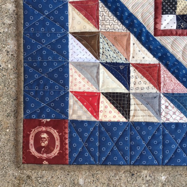 Oh, Katy! I can’t explain the feeling in my heart at seeing your finished little quilt. It’s so patriotic and I love everything about it. The presidential images in each corner really sets it off and I love your quilting as always.