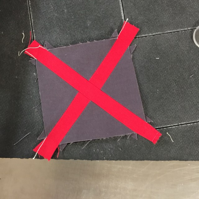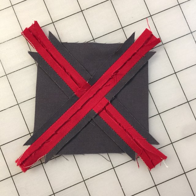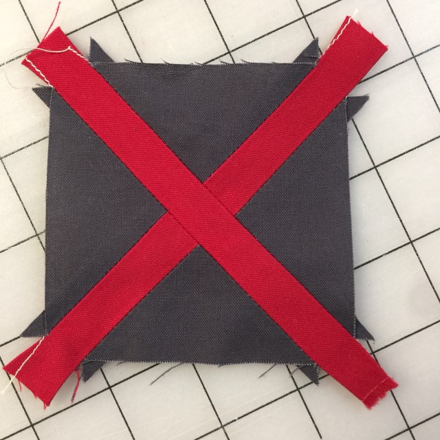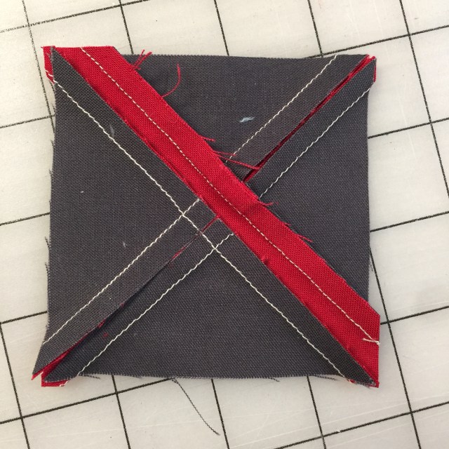 The directions said to press seams open. I hate doing that. But this was my first block. Less than stellar. BTW, the red strips finish at a half inch.