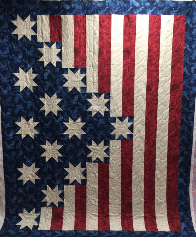 The quilt is called Old Glory for Kyle. I found it on Quilt Jubilee’s website as a free pattern. Here’s the link: https://quiltjubilee.com/tutorials.php