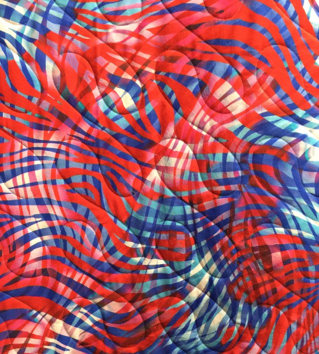That is a fabulous pattern she used, and the quilting is just perfect for it. Thanks for getting it at an angle where we can really see what it looks like.