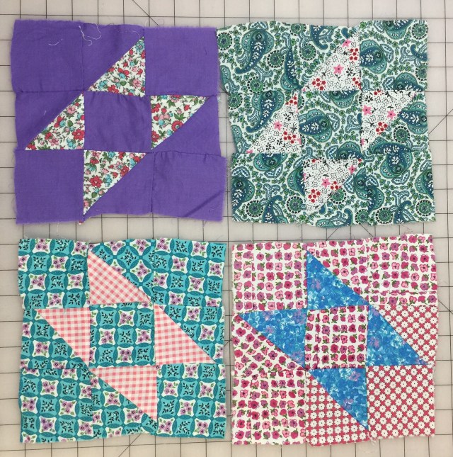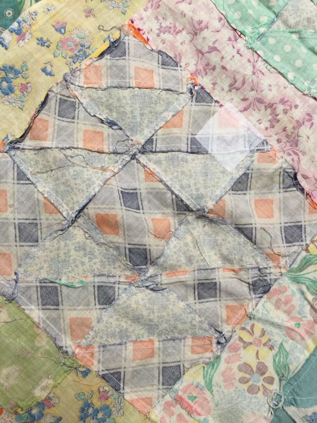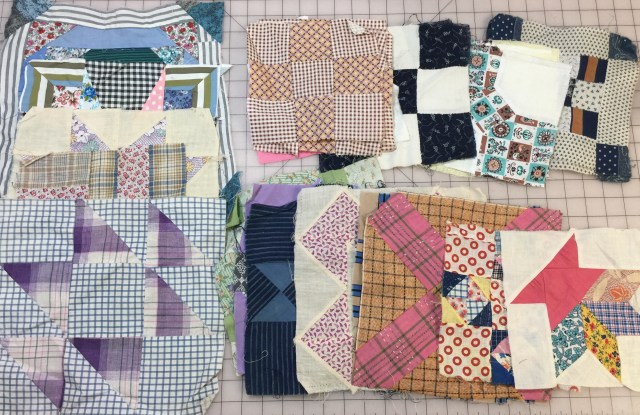 Lot 1 ~ This is a lot of 28 miscellaneous vintage quilt blocks. All different sizes and vintages here. Piecing quality varies. Some are pretty wonky. Great for study or small projects. $15 plus shipping. Sold!