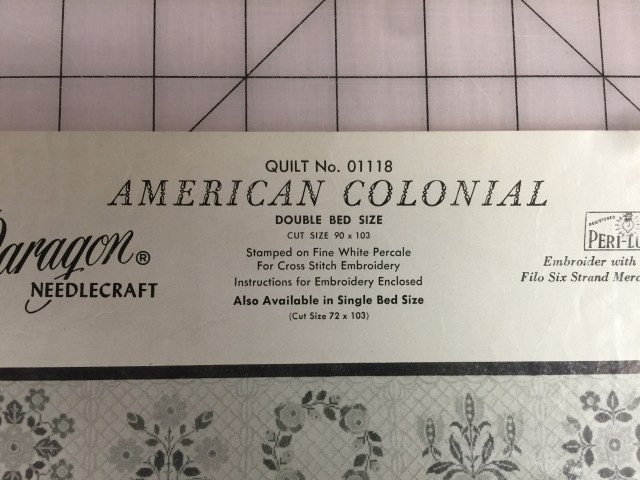 Lot 7 – Paragon Cross Stitch Quilt Kit. No floss included. Some slight discoloration due to age. May wash out. Sold!