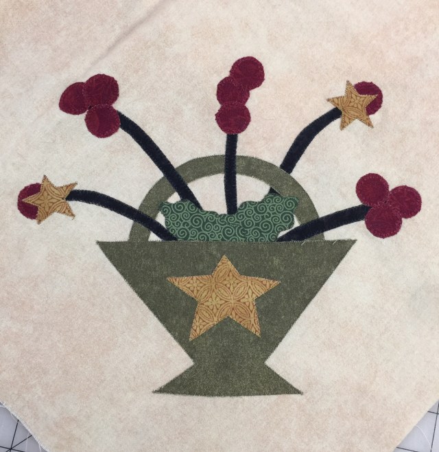 Lot 8 – 51 inch square, machine appliqué quilt top? Table cloth? I picked this up a few months back. The workmanship is beautiful, but I know I’ll never finish it. Sold!