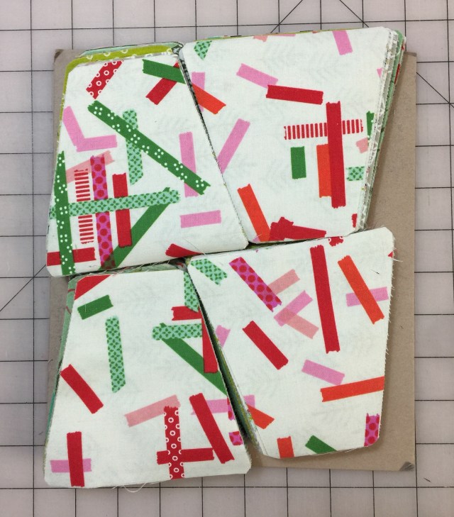 Lot 10 – 400 die cut tumblers, 4 1/2 inches high. All cut from Cotton and Steel collections. 4 each of 100 different prints. If sewn together, these would create a quilt top approximately 60 by 80 inches. Sold!