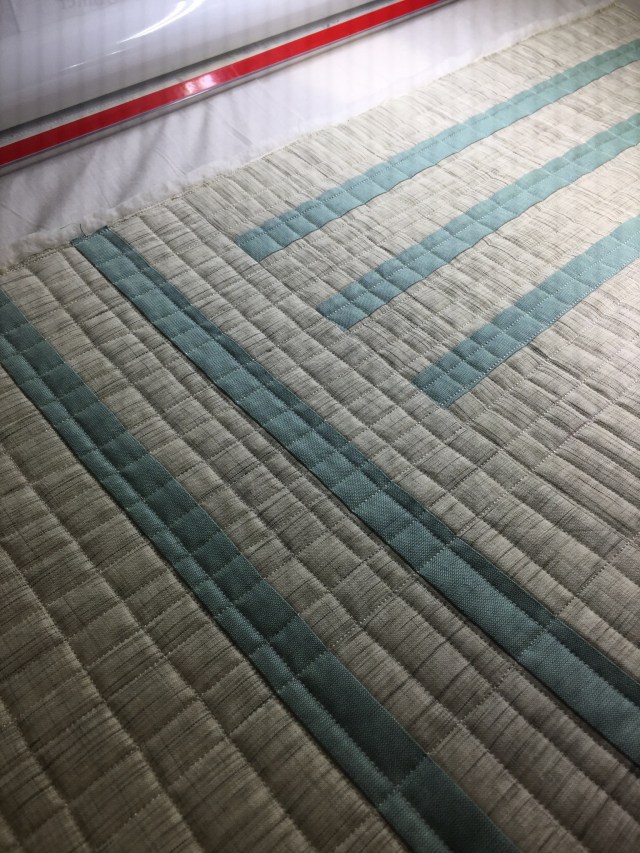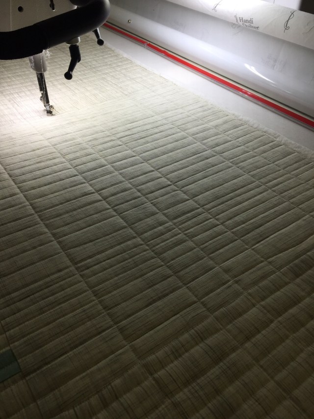 I am finishing off a quilt in random grid too, but mine is on a domestic machine so it is much more involved. I have to mark the quilting lines first so I keep them straight.