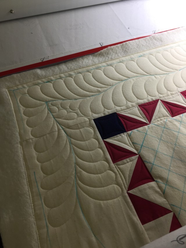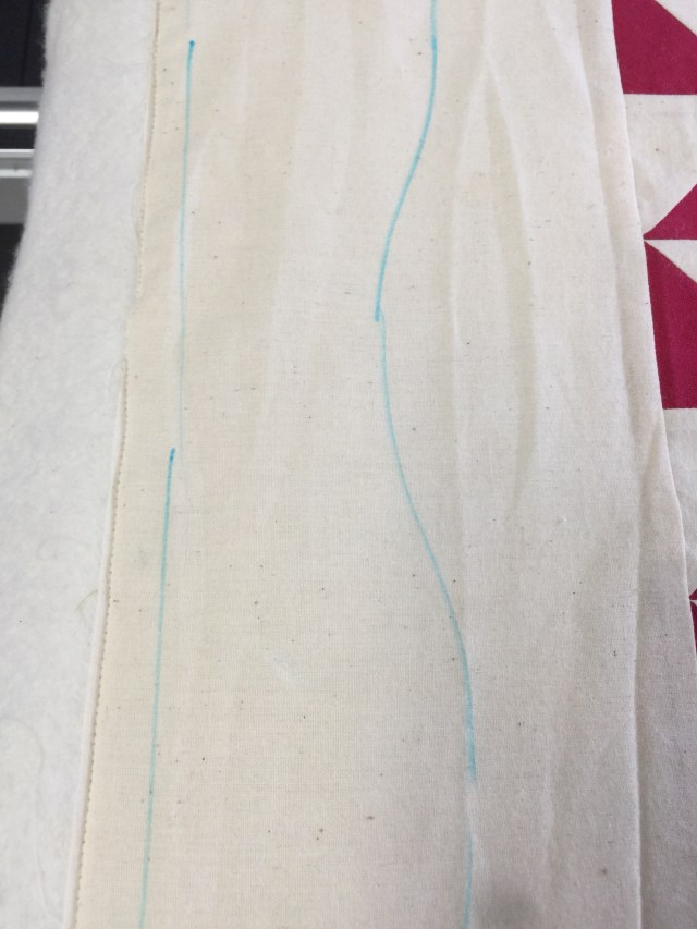 After a very slow start, this quilt is really moving along! I have a love/hate relationship with these blue washout pens, but I did use one here.