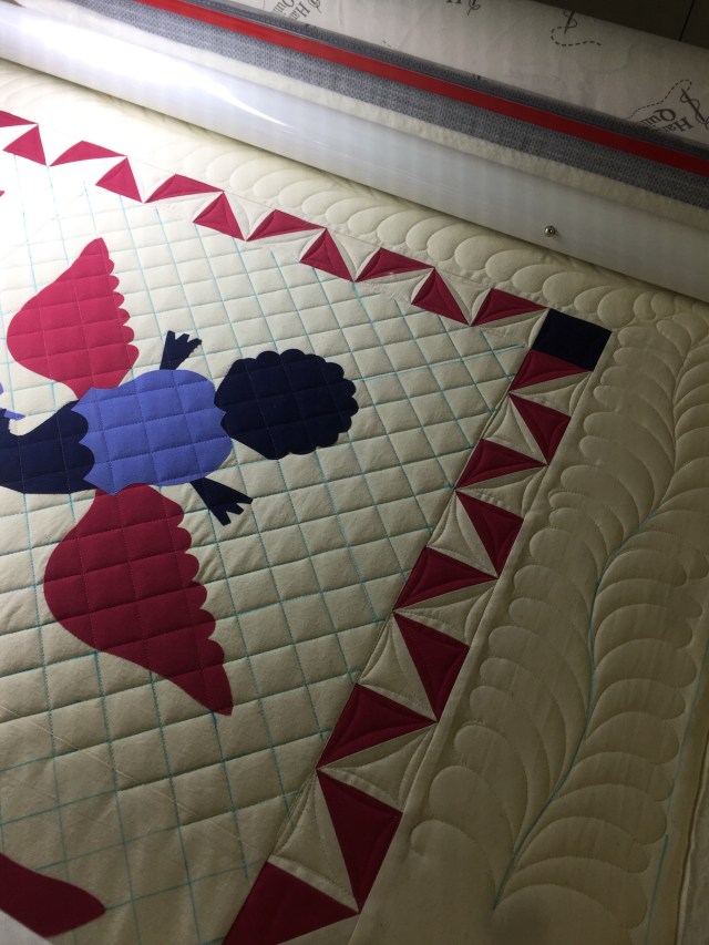 Katy – I went to your previous post on the Eagle Progress and I have a question: what did you use to adhere the applique with? I just love that you quilted right over the top of the eagles. The texture is just lovely!