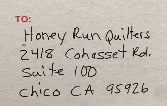 So helpful to have a place to send fabrics. I live in Northern California, so all the better to help out my fellow quilters. Putting together a box to send today.