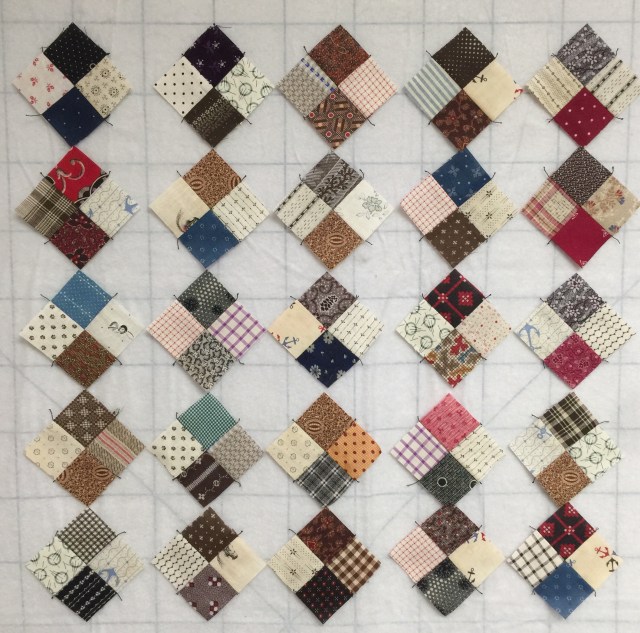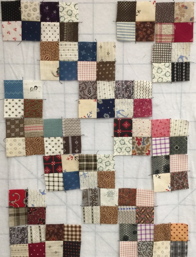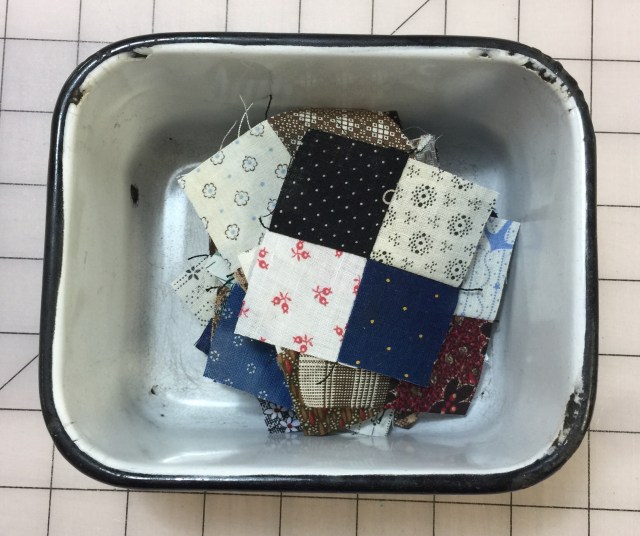 I love all the little things I find in my sewing room! Recently, I came across these tiny four patches I made from vintage scraps.