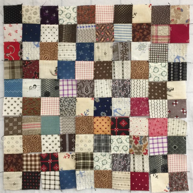 I’m going to be involved in a doll quilt swap in the new year and I think I might use these as my starting point. They will finish at two inches. They would look good on point, perhaps with a double pink background.