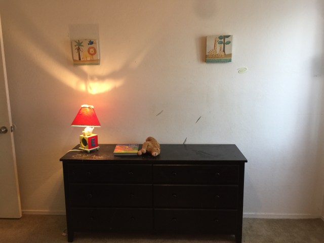 The top after pic most accurately shows the paint color. I ordered everything except for the paint on Amazon and timed it so the bunk beds, mattresses, and other bits would arrive at nearly the same time we did. We reused the dresser and found the lamp in a closet. The boys loved it!