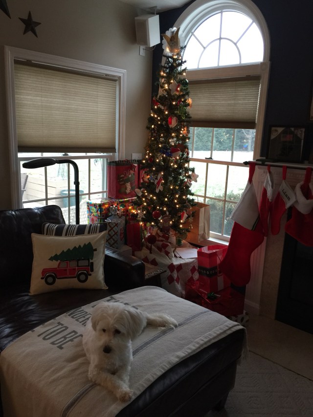 I’ll be taking down my Christmas decorations soon, but I thought I’d share them with you before I do. We kept things very simple this year since we were in Arizona for a good chunk of December. I put up this small tree. I use a vintage quilt for a tree skirt.