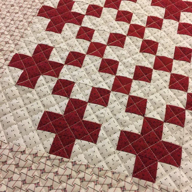 Pretty quilt! Love the red on different backgrounds