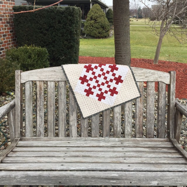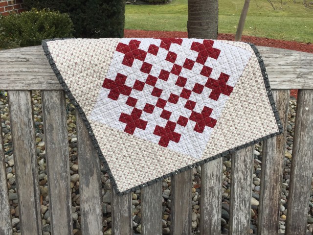 On Christmas Eve, Lori at Humble Quilts , shared a tutorial for a small quilt called Swiss Cross. I decided to give it a go.