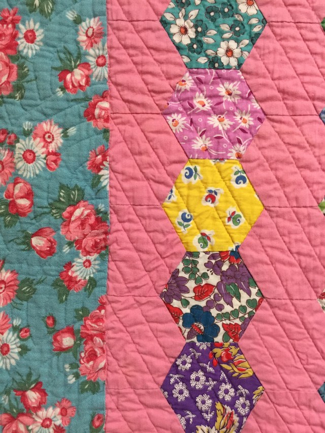 The fabrics are all vintage and the border is from a feedsack.