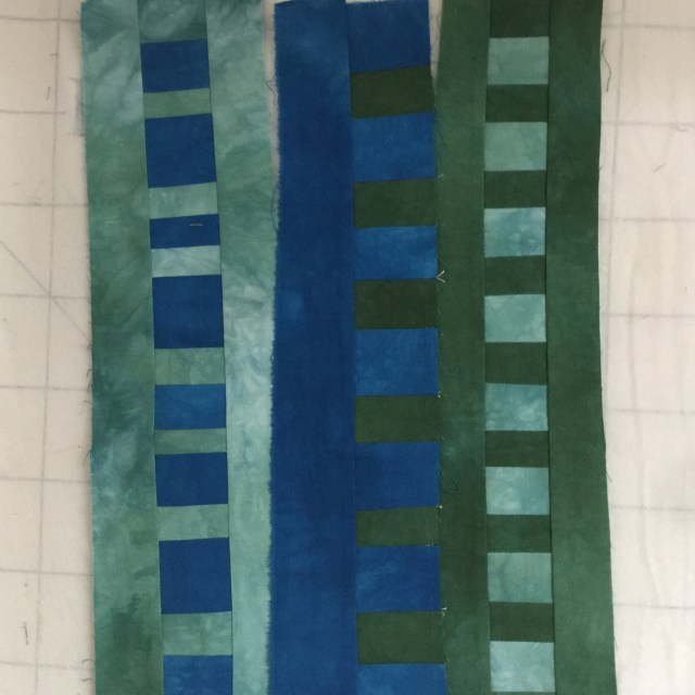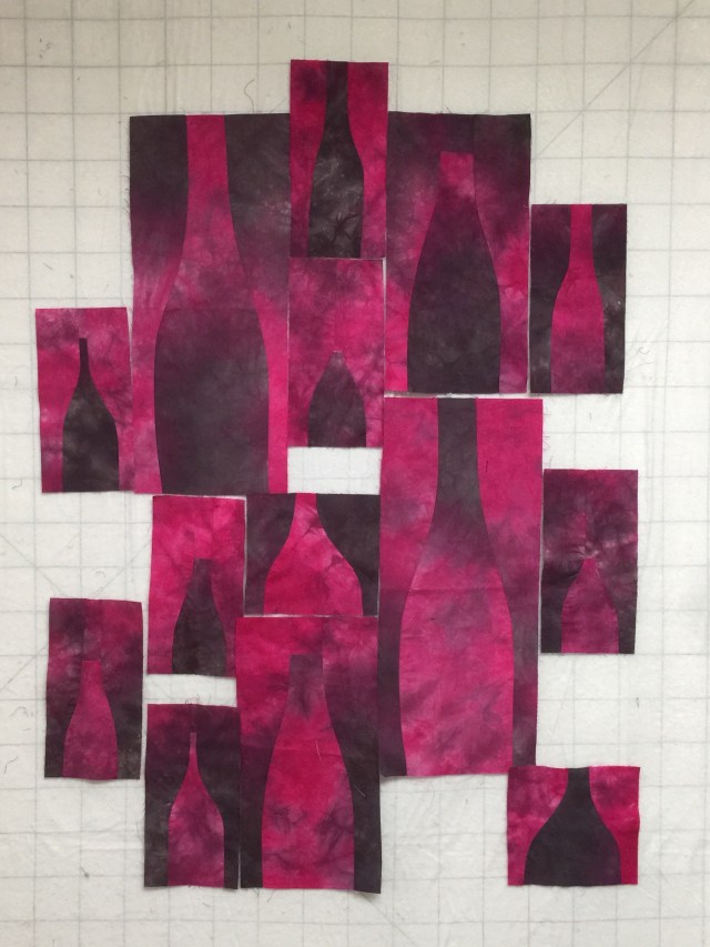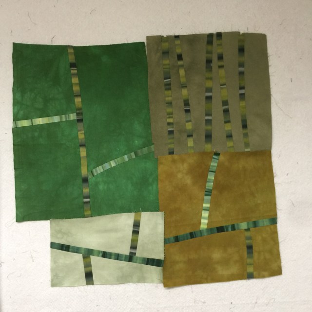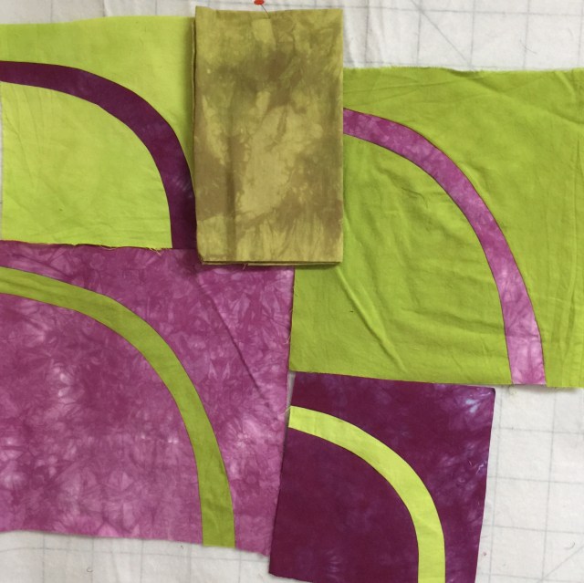 Sometimes, staring at a bin full of fabric can be about like looking at a blank piece of drawing paper. You suddenly freeze and can’t think of where to even start! So in looking through my hand dyed stash, I pulled out some bits and pieces that I had begun and abandoned for one reason or another.