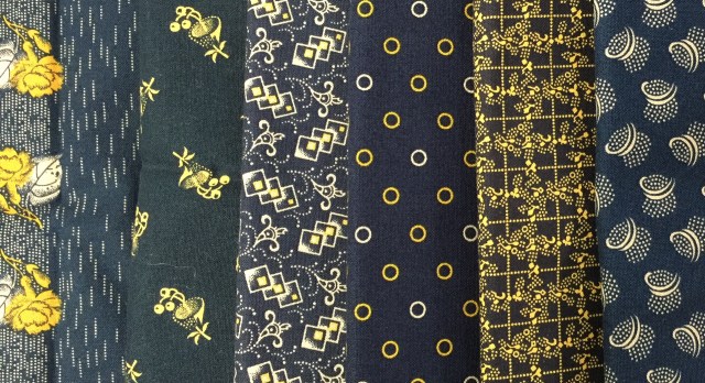 I’ve been working on another Fat Quarter Shop Remix project. I’m using these fabrics from al older Paula Barnes line called Carolina Blues.