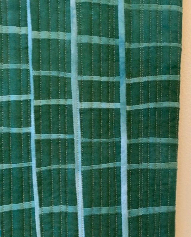 The interplay of the fabric colors is very cool. I like this piece, Katy! It turned out well. I hope it does well in the show!