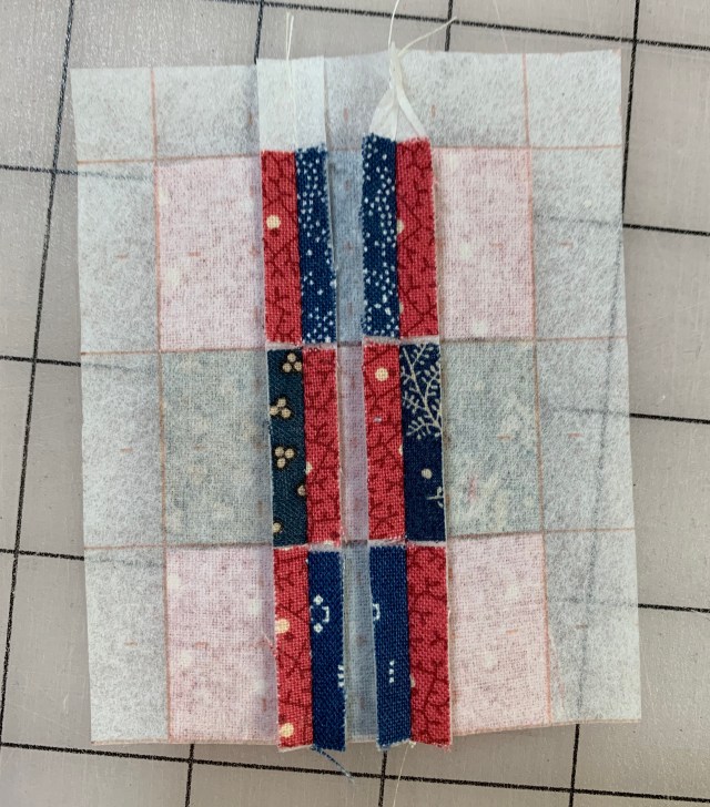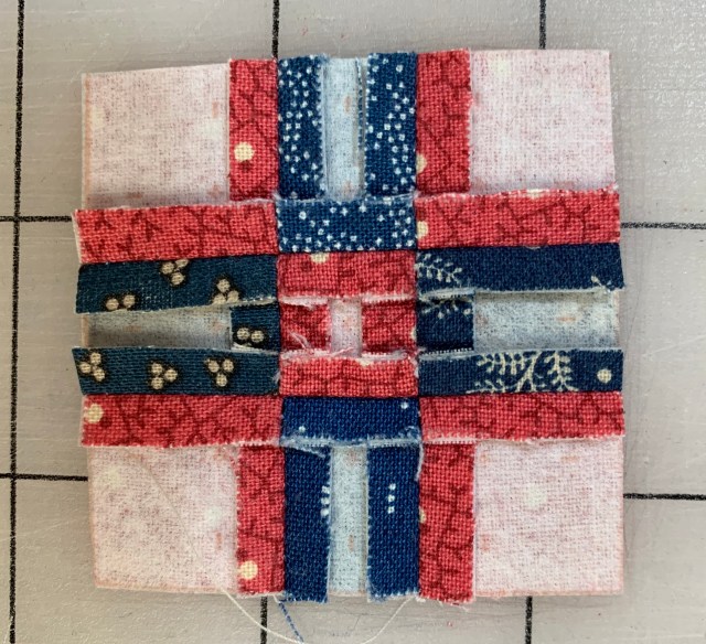 I remember this grid when “Watercolor quilts” were a fad. Never saw instructions for cutting off the fold though, that really helps!