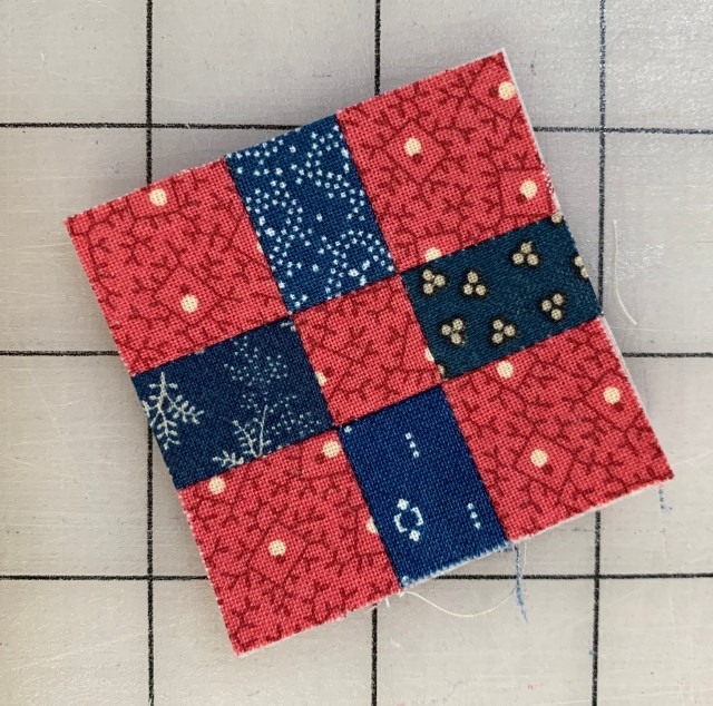 I found something I wanted to make, but I would need to end up with half inch finished squares. Soo decided to try a sample using some scraps of this.