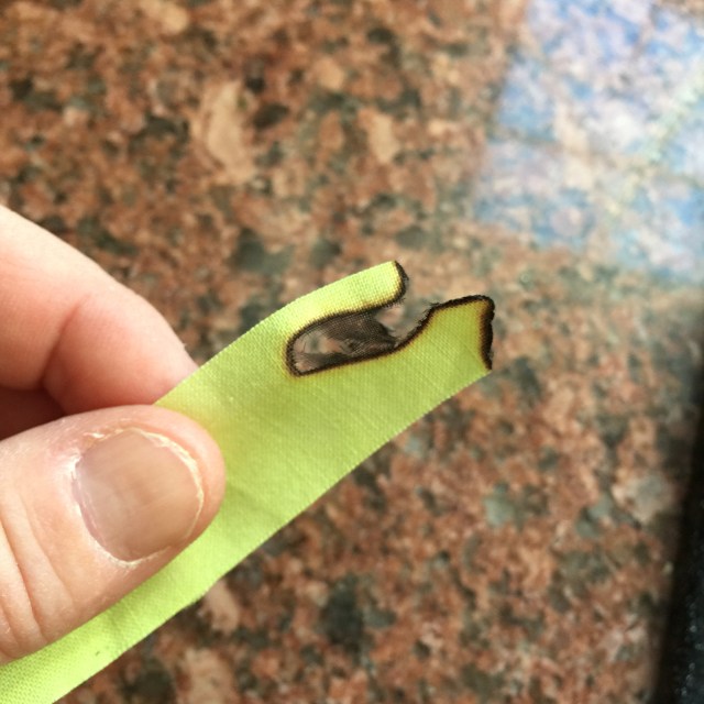 I recommend doing this over a sink with water running to prevent any disasters! But it is a good test if you are unsure of fabric content.