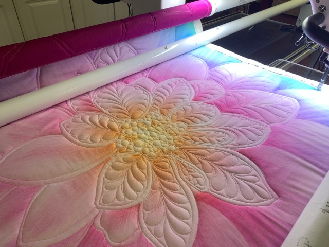 I saw those monster flowers in the Keepsake catalog that came yesterday. Seeing your photos gives me a better idea of the scale! I like your intricate quilting design.