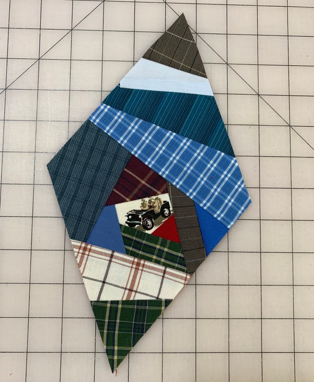 Isn’t it fun to incorporate things in a quilt that only you know are there. The jeep is the perfect addition and your diamonds are looking good.