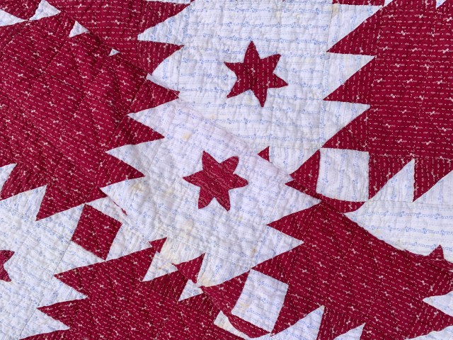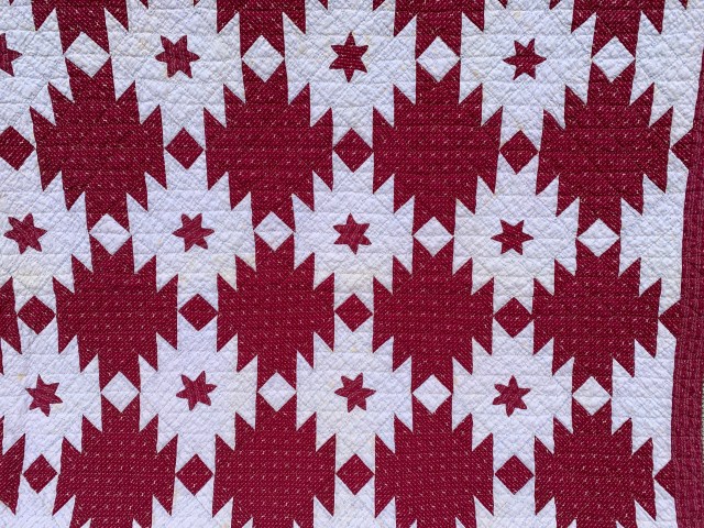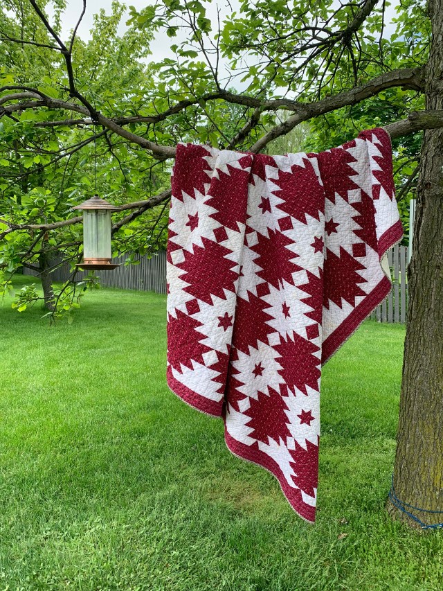 There is nothing prettier than a two-color quilt, and I love red and white together. This is a really nice finish, Katy! You find some great quilts on your outings. Looking forward to seeing what you hand quilt next too!