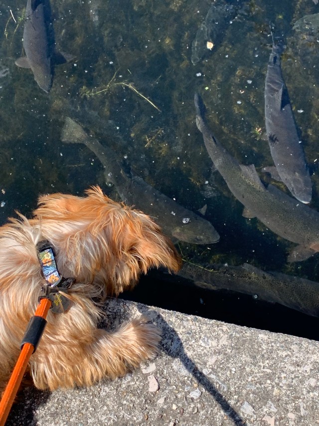 She was fascinated by the fish in the pond. 😂