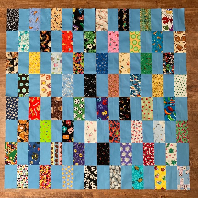I’ve gotten this far on the I Spy quilt.