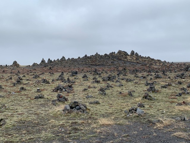 This next photo is a field of cairns. Laufskálavarða is a lava ridge, surrounded by these stone cairns. All