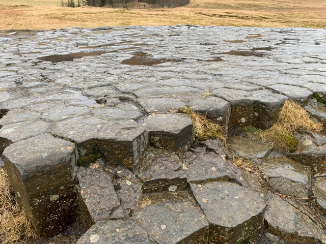 This was called the Church Floor and was in a small field. There was a huge area of this. It is the same basalt column type of formation as shown above, but it was leveled off. It looks like manmade tile floor! It was pouring rain when we visited here. If you go to Iceland, bring a rain suit!
