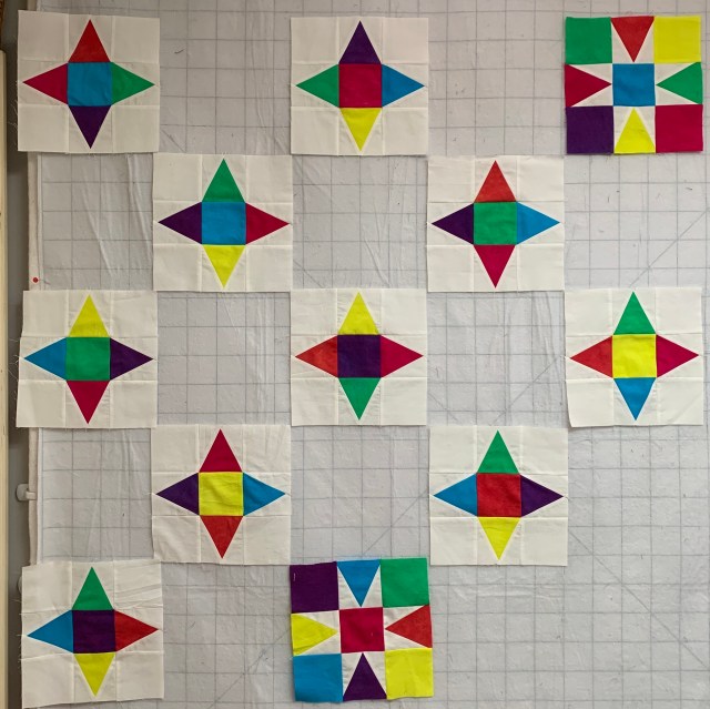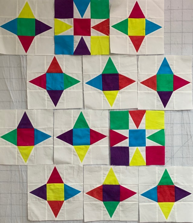 Lovely bright blocks for a baby quilt.. All he layout’s look nice.