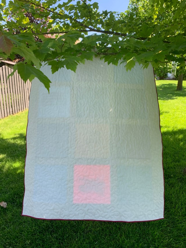 What a great gift! I enjoyed reading the shirts on the quilt. It’s always hard to see people from our church families leave, but you are sending them off with a quilty hug. Nicely done, Katy!